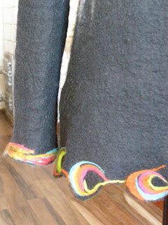 Witam bardzo cieplutko.Ostatnio ,chyba ze względu na okres jesienny mam wielką ochotę na filcowanie.W trakcie zostaje do obrobienia troszkę drobnych prac,a ta zajęła mi wyjątkowo dużo czasu i bolących pleców:)No i nie ukrywam jestem z niej tak troszeczkę dumna:)Oczywiście po zakończeniu wszelakich prac już w głowie mi zaświtało z 1000 poprawek,ale co tam "pierwsze koty za płoty"bo to mój pierwszy żakiet:)Pozdrawiam wszystkich tutaj zaglądających mile ,ciepło i z wielką sympatią:)Lila